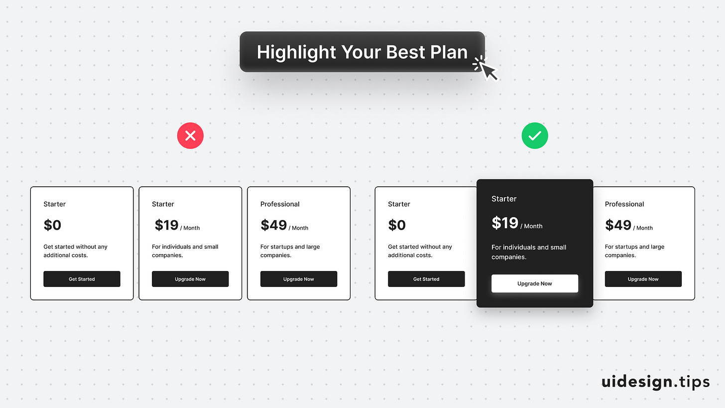 Always highlight your best pricing plan and make it pop out.